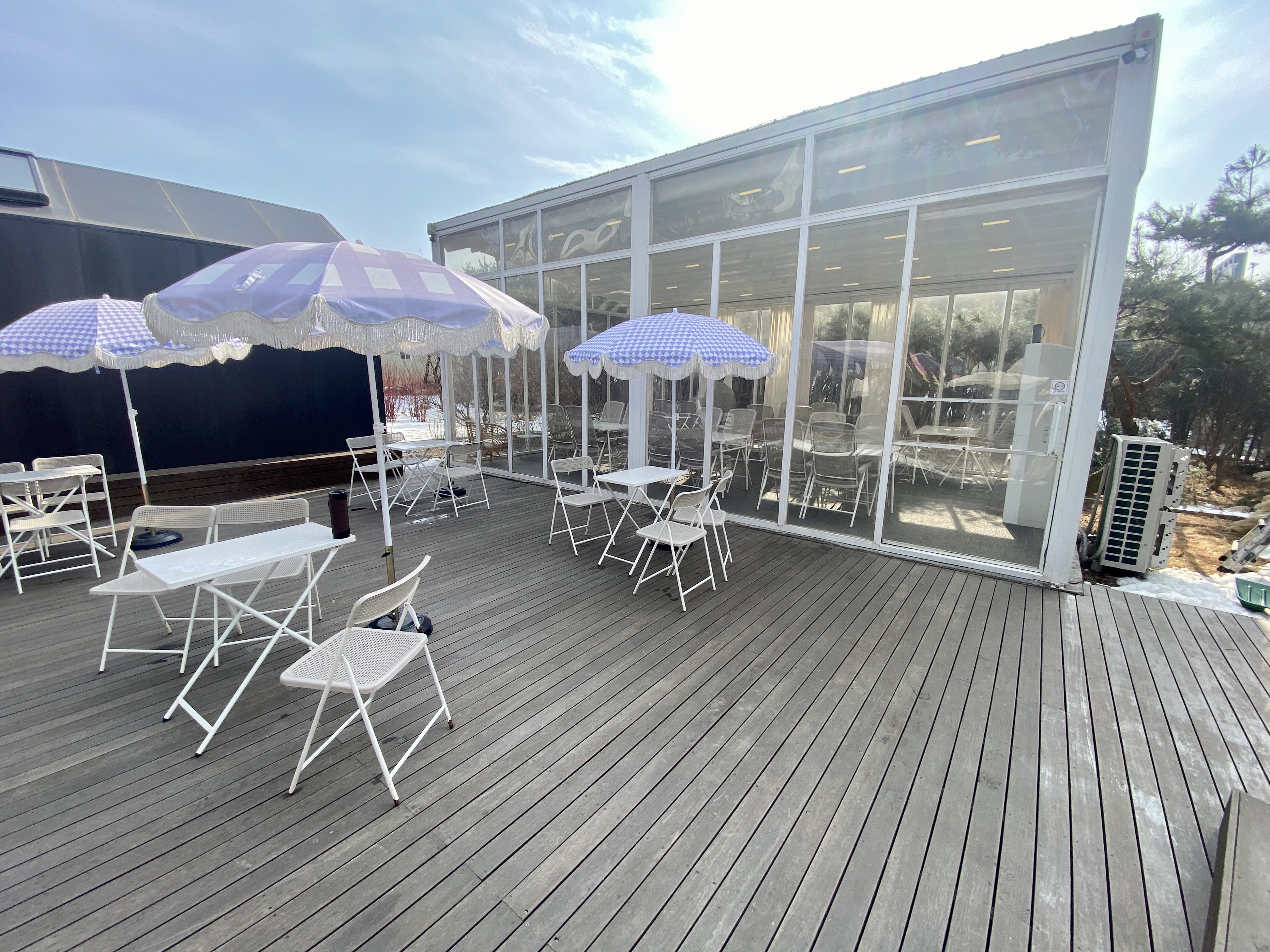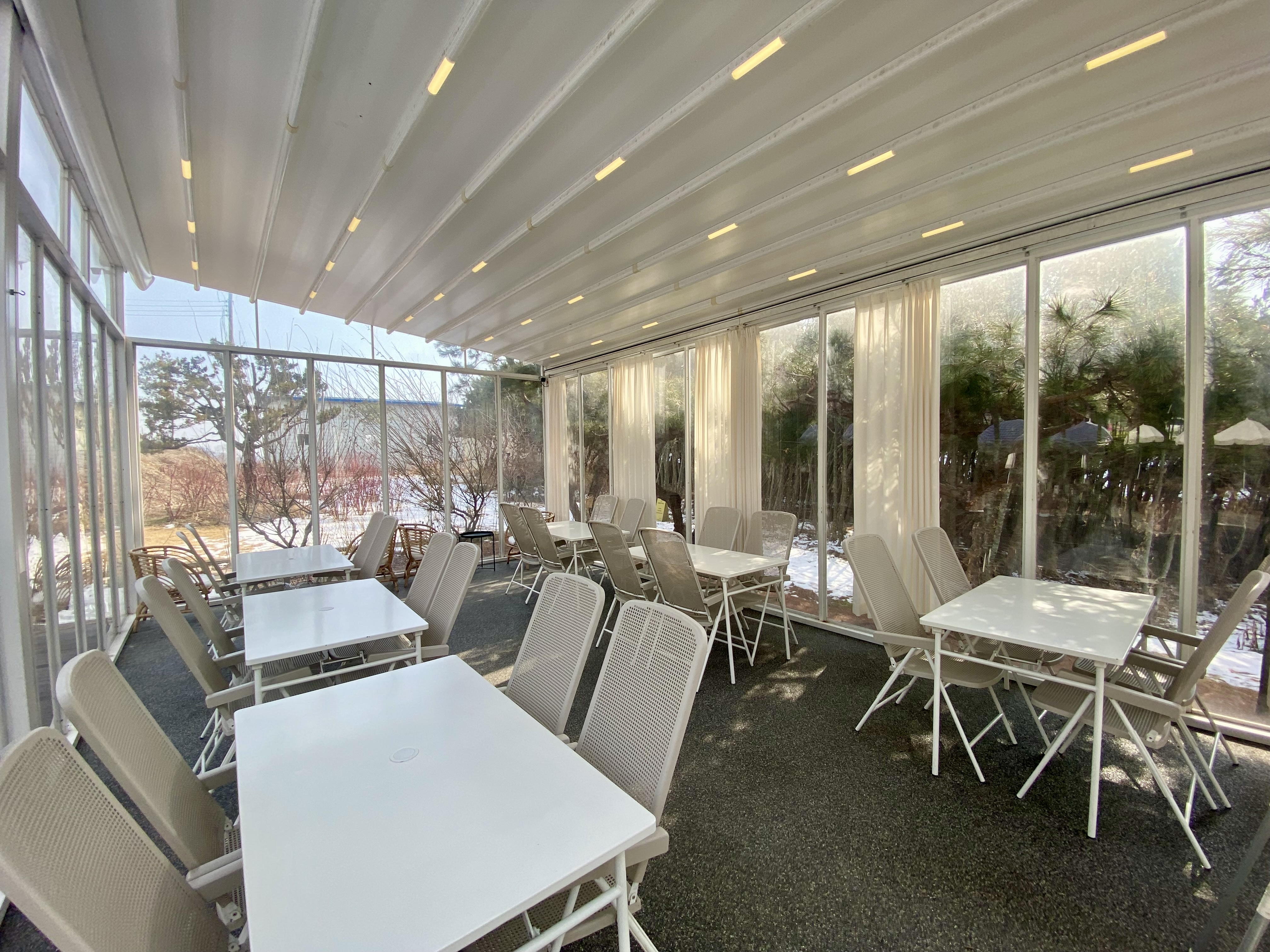 카페는 온실 형태의 야외 좌석으로 구성되어 있어 자연 속에서 힐링하기 좋아. 또한, 애견 동반이 가능하니 반려견과 함께 방문할 수 있어.