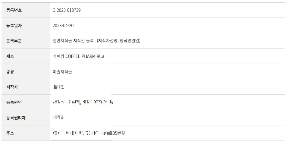 COFFEEPHARM의 상표권은 갖고있었지만 심볼을 추가적으로 신청한것이다.