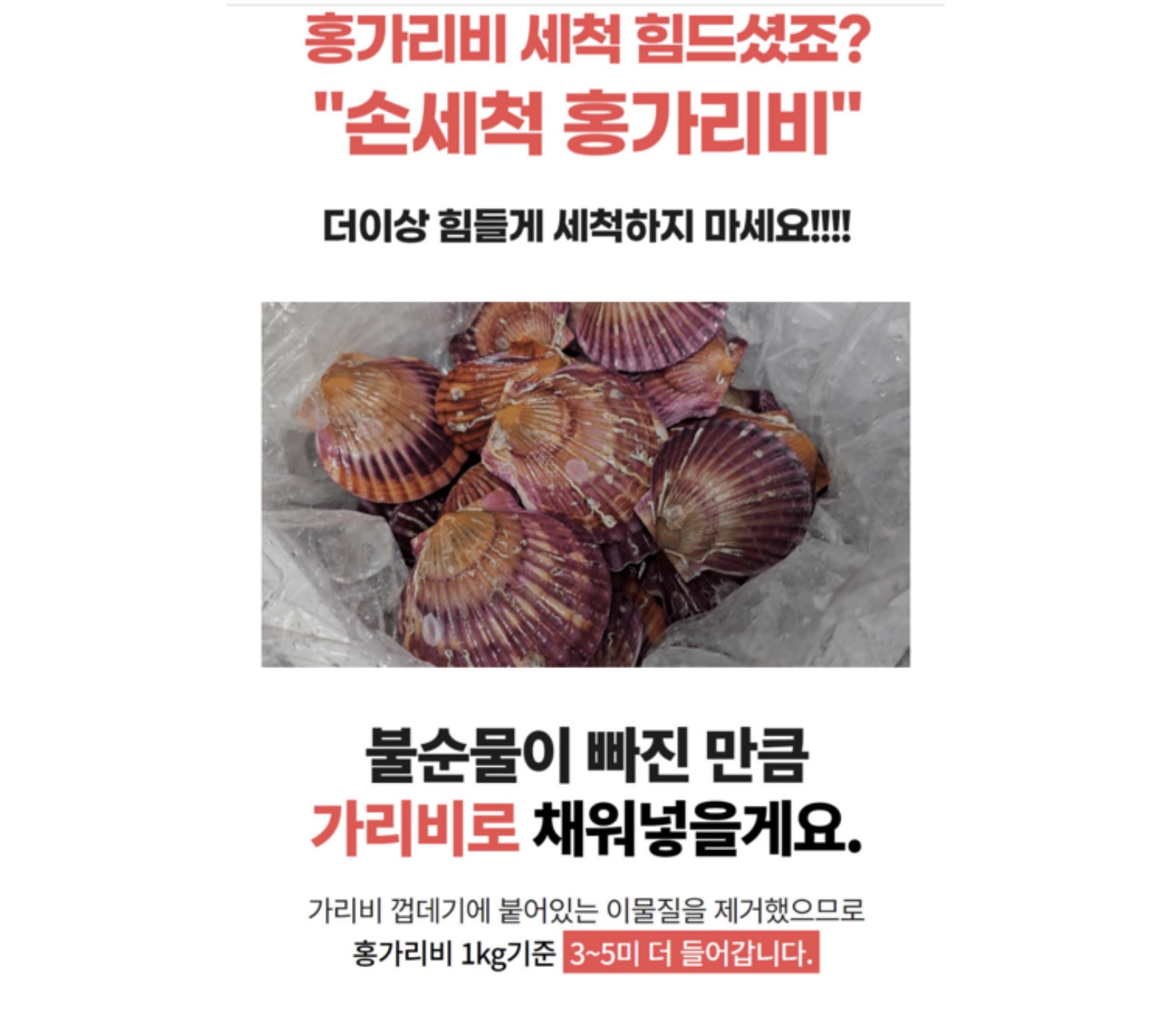 홍가리비는 가격이 저렴하지만 따개비가 많이 붙어있어 손질하는데 힘들다.