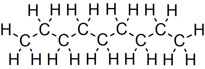 예전부터 흔희 사용했던 세척제이자 용제, 헥산(n-hexane)의 구조는 다음과 같습니다. 용제와 세척제는 한끗 차이인데 세척제는 결국 닦아내야 하는 물질과 비슷한 성질을 가지고 있어야 닦여 나오기 때문에 용제와 같은 원리가 작용합니다.