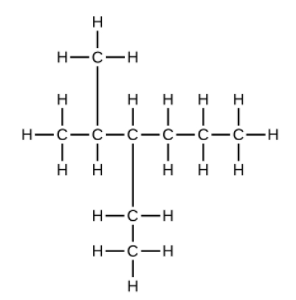 위의 유기화합물은 9개의 탄소로 구성되어 있습니다. 하지만 가지가 2개가 있죠. 가지가 없는 탄화수소(nonane)는 다음과 같습니다.