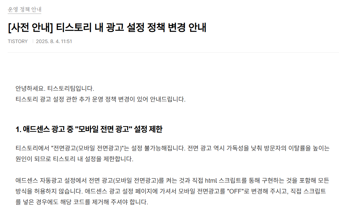 더욱이, 9월 3일부터 모바일 전면 광고를 제한한다는 티스토리팀의 공지는 이러한 혼란에 기름을 붓는 격이다. 가독성 향상과 광고 품질 개선이라는 명분 아래, 수익의 마지막 희망마저 앗아가는 듯한 이 정책은 수많은 블로거를 좌절하게 만들고 있다. 어떤 이는 티스토리를 '쓰레기 같은 회사'라며 떠나겠다고 선언하고, 또 어떤 이는 '집단 고소감'이라며 분노를 표출하고 있다. 이처럼 플랫폼의 일방적인 변화에 속수무책으로 당하는 상황은 창작자들에게 깊은 무력감을 안겨준다.