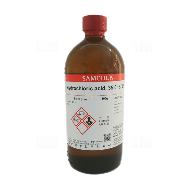 - 일반적으로 37 % 염산의 비중은 약 1.18 g/mL이다.