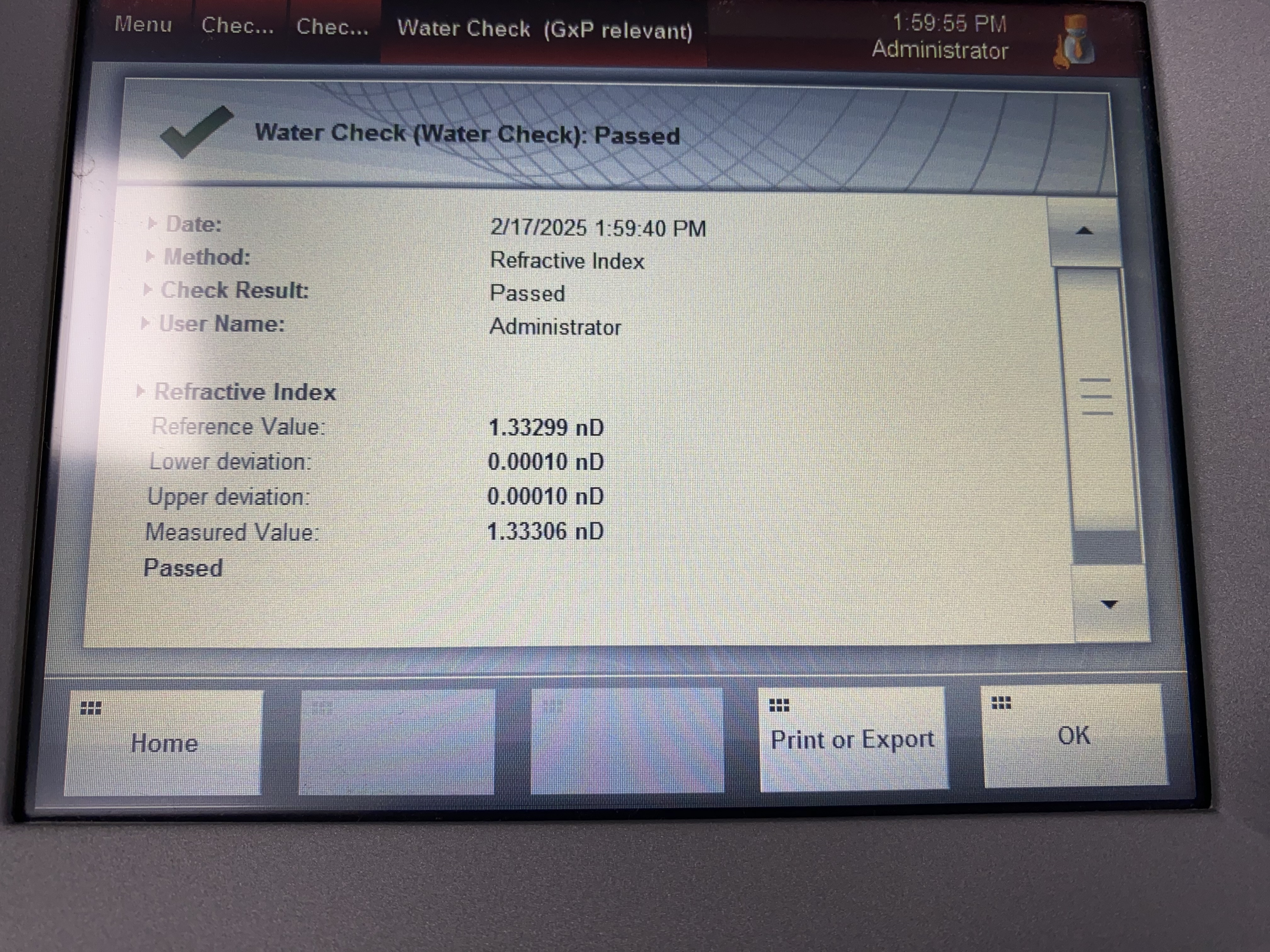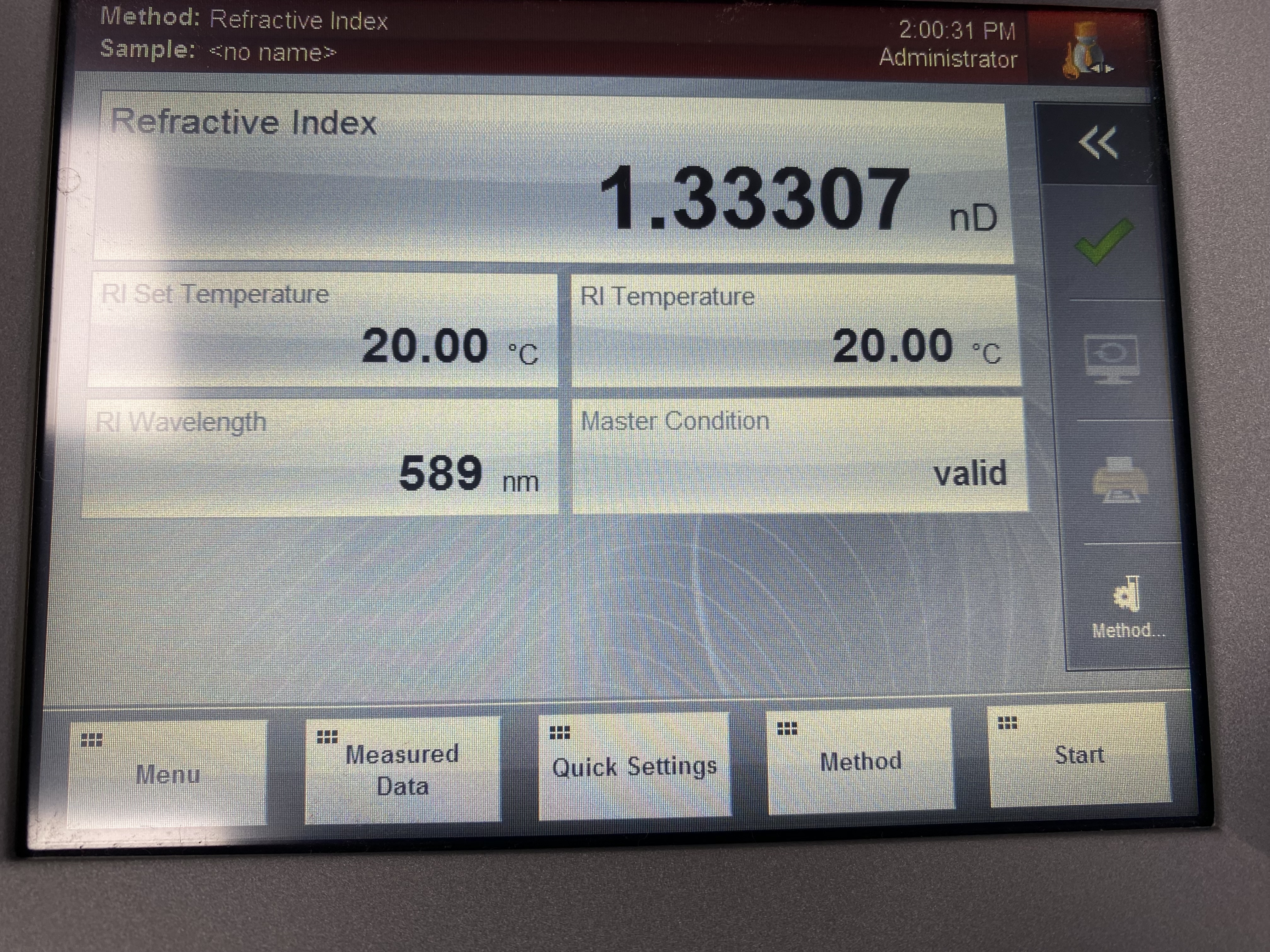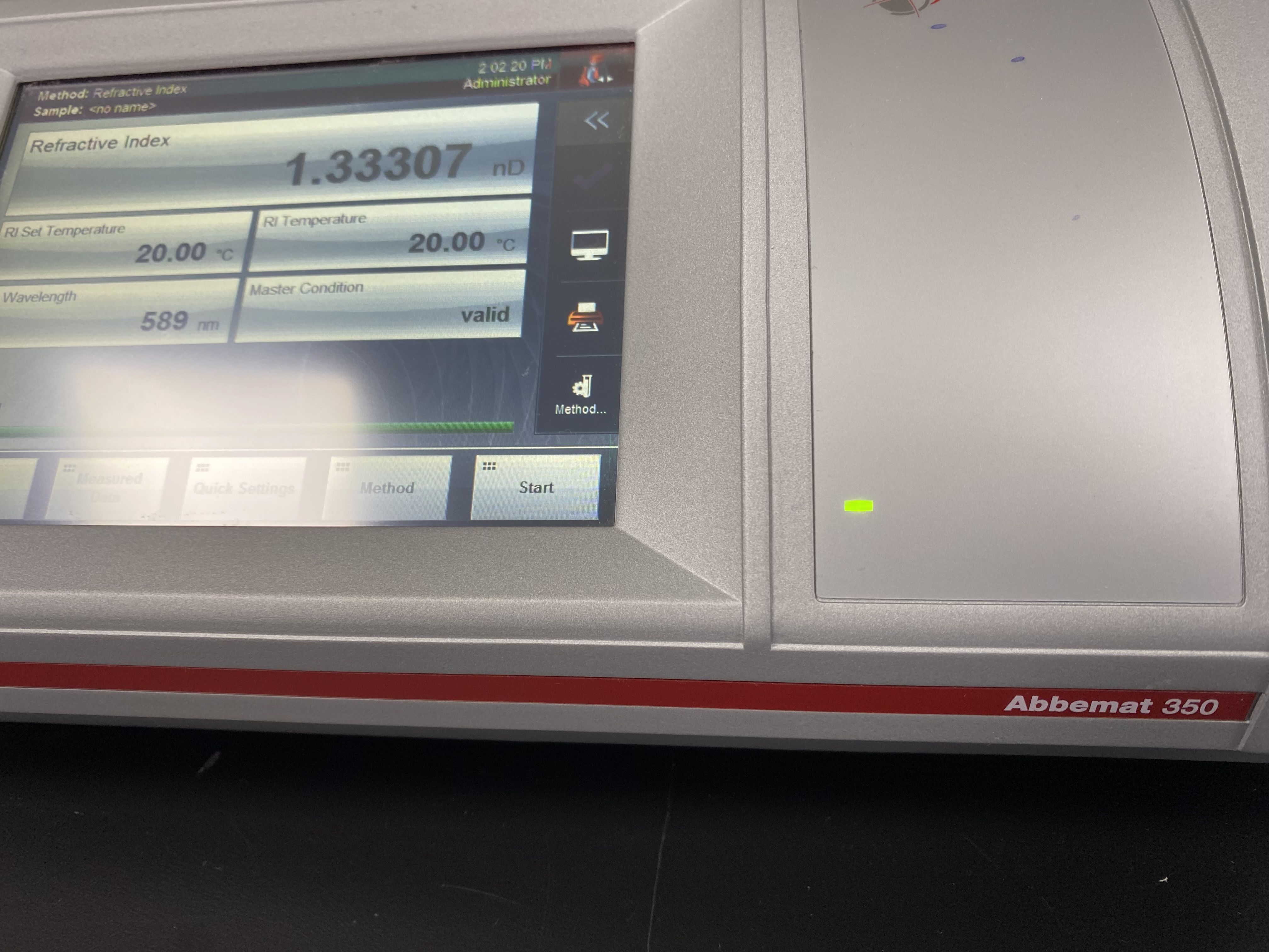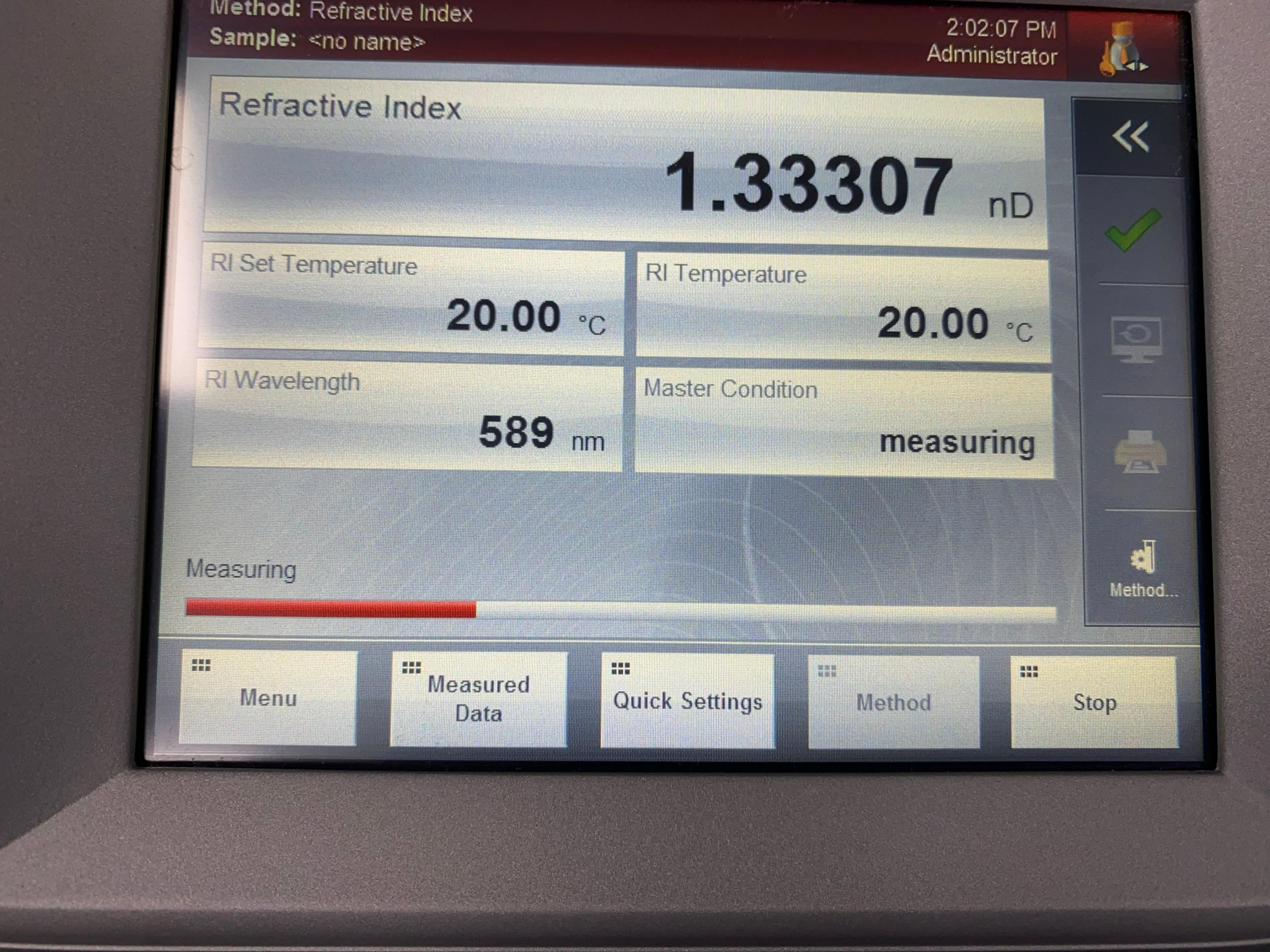 우리 실험실에도 굴절률 측정기가 있어 물로만 측정해 보았다. 물의 굴절률(n = 1.333)이 잘 나온다. 이렇게 커피도 품질관리 할수 있을것 같다.