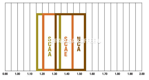 첫 번째 표의 왼쪽 Y축의 strength는 추출된 커피 한잔의 고형성분을 퍼센트 한 것이다. SCAA, 미국 이 선호하는 농도는 1.15% - 1.35%이다. SCAE 유럽의 경우 1.2% - 1.45%로 조금 더 강한 농도를 선호하며, 북유럽권인 노르웨이에서는 1.3% - 1.55%의 농도를 선호한다. 한국엔 아직까지 정확한 선호 데이터는 없다. 신흥 커피 소비국으로 떠오르는 브라질 같은 경우 2%이상의 스트롱한 커피를 선호한다고 한다.