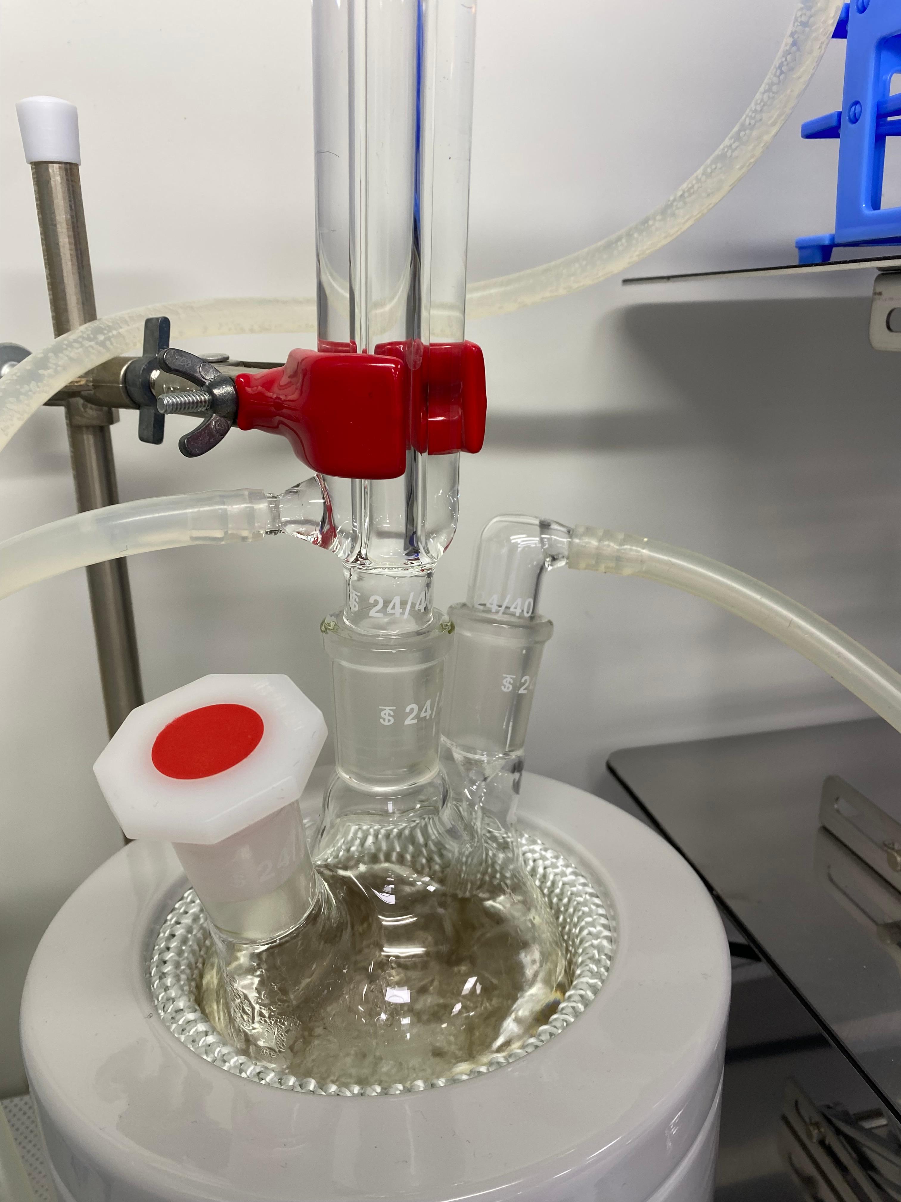 · 마지막 몇 mL가 남을 때 코크를 닫고, 혼합액을 가열합니다.