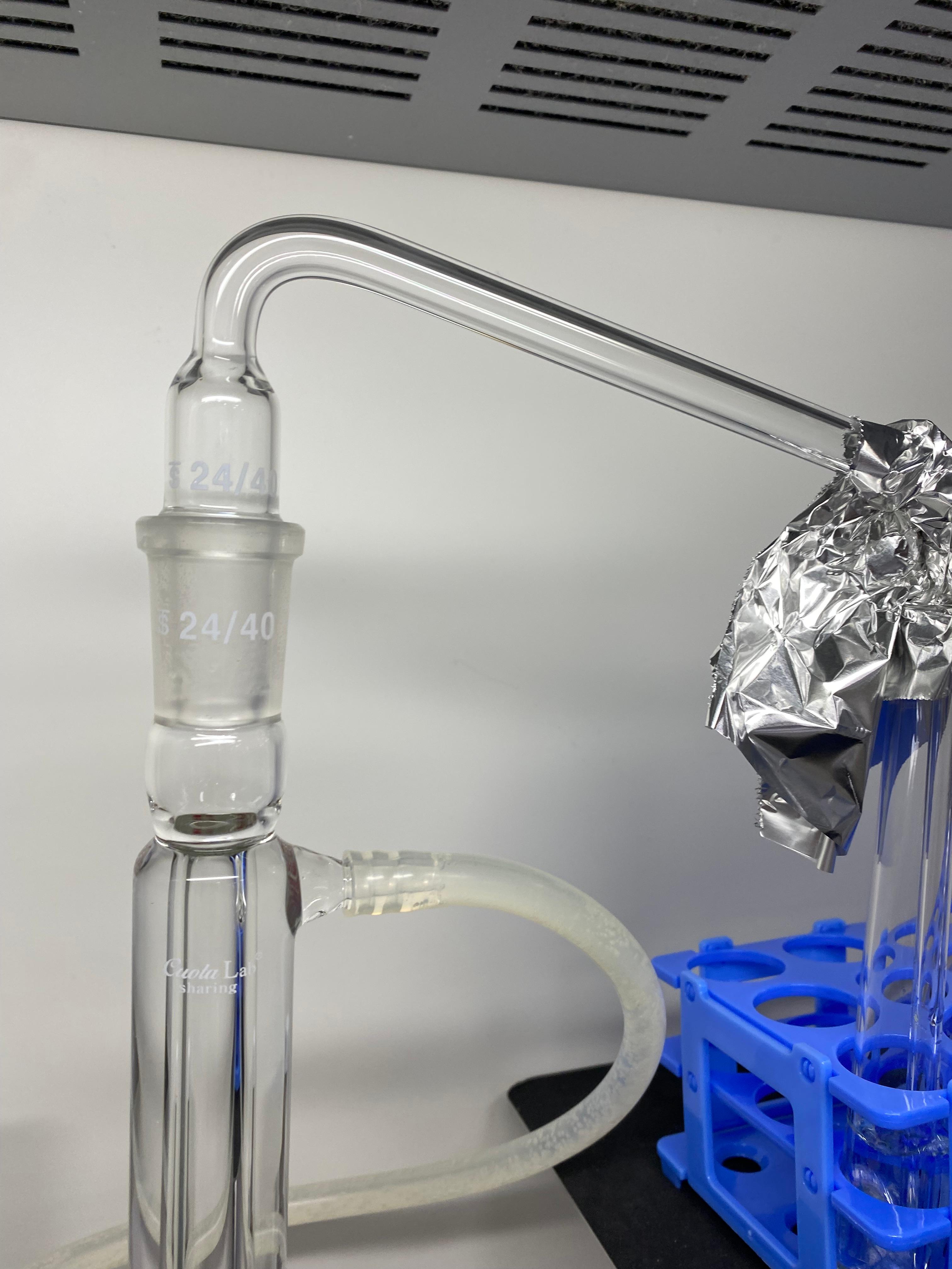 · 혼합액이 1시간 동안 끓은 후, 시험관(D)을 분리하여 내용물을 삼각플라스크에 옮깁니다.