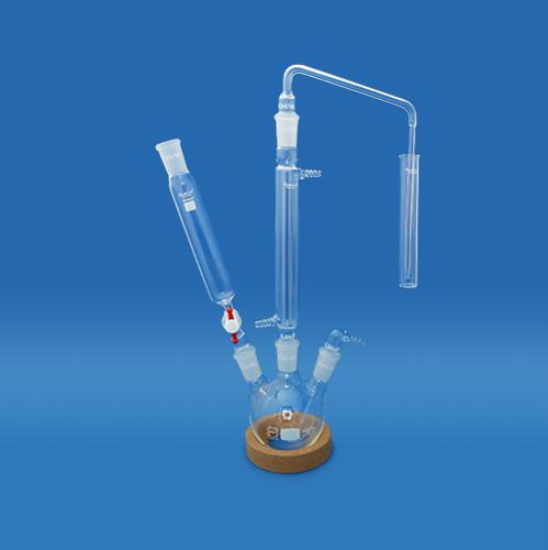 · 원통형 분액깔때기를 삼구증류플라스크(A)에 다시 장착합니다.