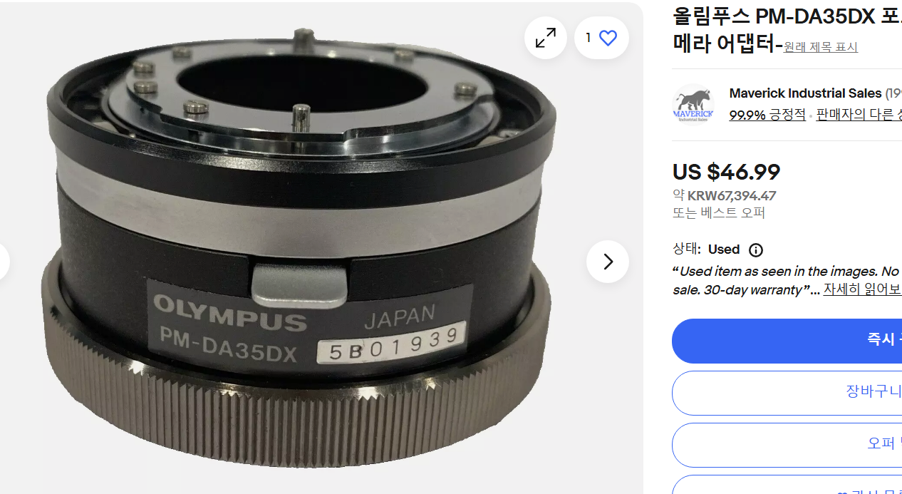 요즘은 거의 CCD 카메라를 사용하기 때문에 사용하지 않는다. 그래서 매물이 싸게 올라온거 같다. 하긴.. 요즘 누가 현미경 사진 찍는데.. 필름카메라를 사용하겠나?,, 옛날에나.. 사용했겠지...