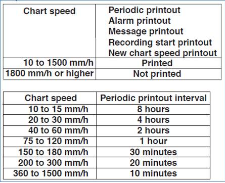 Chart speed 에 따라 길게는 8시간 부터 짧게는 10분까지 주기적으로 프린트 합니다.