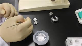 고체 시료는 세 가지 주요 방식으로 준비할 수 있다. 첫 번째는 가장 널리 쓰이는 KBr pellet 방법이다. 분석 시료를 미세하게 분쇄한 뒤, 분말 상태의 KBr과 혼합하여 고압으로 눌러 투명한 펠렛 형태로 만든다. 이때 KBr은 압력하에서 부분적으로 녹아 시료가 매트릭스 내부에 고정되며, 그 결과 투명한 펠렛이 만들어진다. KBr은 적외선을 400 cm⁻¹ 이하까지 투과시키므로, 양질의 펠렛을 만들면 방해 띠 없이 깨끗한 스펙트럼을 얻을 수 있다. 그러나 KBr이 공기 중의 수분을 쉽게 흡수하기 때문에 관리가 중요하며, 수분이 들어가면 스펙트럼에 불필요한 흡수띠가 생긴다.