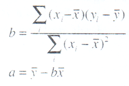 이러한 수치를 통한 직선의 최고의 fit은 다음과 같은 방정식으로부터 구해지는 a와 b로 결정된다.