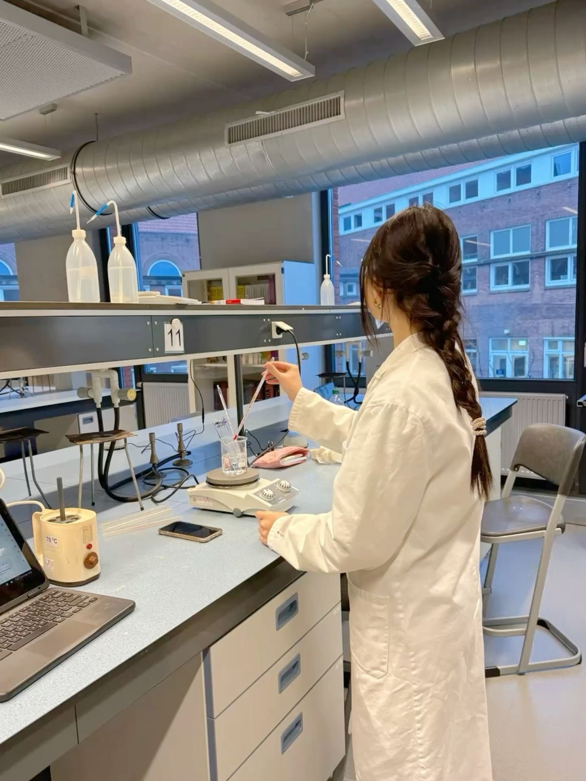 공간이 왜 포토존으로 느껴지는지 이해하려면 동선의 원리를 보면 된다. 테이블은 실험의 효율을 위해 배치되었고, 조명은 정확한 시료 관찰을 위해 조정되어 있다. 장비는 장식이 아닌 도구이고, 장면은 연출이 아닌 자연 발생이다. 사람이 작업할 때 무심코 만들어지는 동작과 시선, 손의 움직임, 정돈된 테이블 위 장비의 배열이 하나의 장면이 된다. 사진을 찍기 위해 포즈를 취할 필요가 없다. 단지 본연의 행동을 할 때 화면이 완성된다. 이런 자연스러움이 곧 공간의 미학이다.