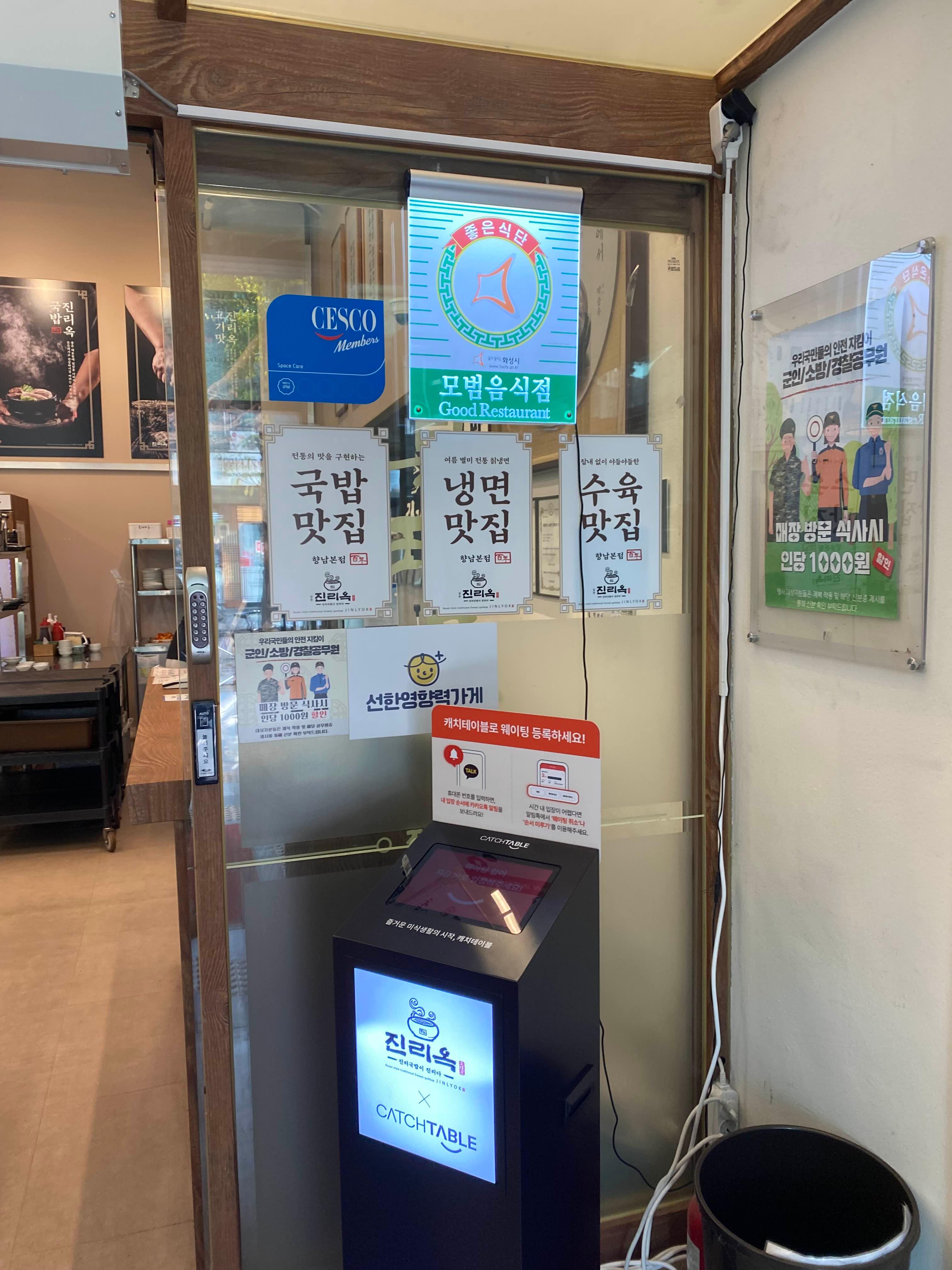 진리옥의 내부는 테이블이 약 10개정도 있다. 국밥 특성상 회전율이 좋다고 하더라도.. 2인 테이블이 좀 더 많았으면 했다. 나뿐만 아니라 혼밥 하는 사람들이 많았는데.. 4인 테이블을 혼자 쓰는 게 눈치가 보일 것 같다.
