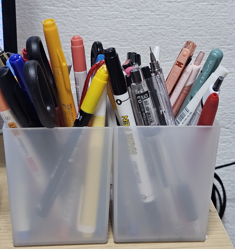 볼펜은 늘 책상 위 어딘가에 있다. 대부분은 여러 개를 동시에 펜꽂이에 세워두거나 컵 형태의 용기에 꽂아놓는 방식으로 정리한다. 익숙하고 간단한 방법이다. 그러나 실제로 일상에서 볼펜을 사용할 때의 행동을 떠올려 보면 모순적인 순간이 있다. 우리는 다양한 볼펜을 한 공간에 함께 꽂아두면서도 자주 쓰는 볼펜은 따로 빼두거나 아예 책상 위에 눕혀두곤 한다. 이유는 단순하다. 꺼내기 번거롭고 원하는 볼펜을 찾는 데 시간이 걸리기 때문이다.