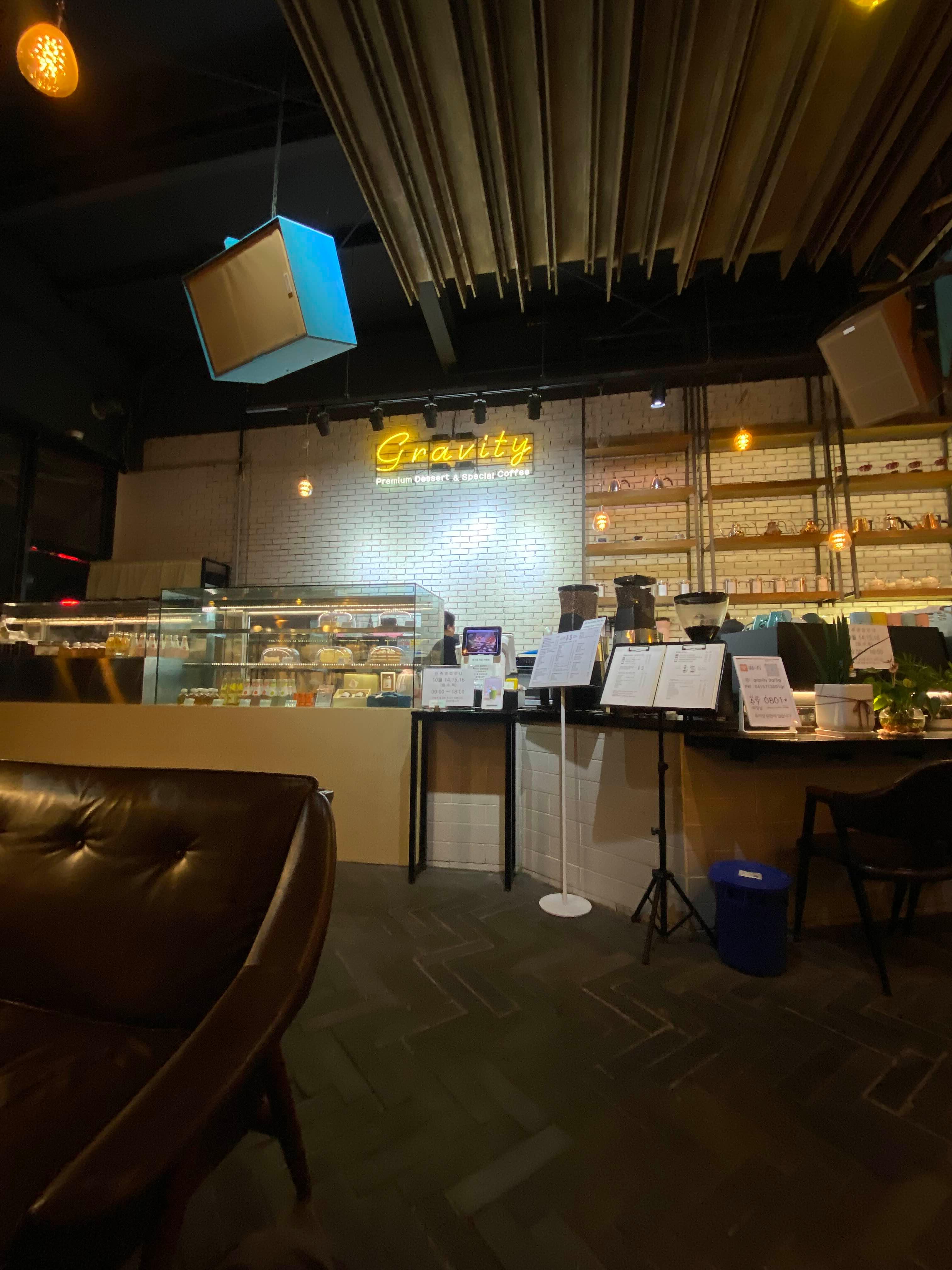 신방동이라는 동네는 언제부터인가 일상의 틀을 벗어난 공간들을 찾는 사람들이 조금씩 모여들기 시작했다. 이곳을 찾는 이들은 단순히 커피를 마시러 온 것이 아니라, 새로운 시각과 감각을 제공하는 장소를 경험하고자 하는 경우가 많다. 그래서 그래비티라는 이름을 가진 이 카페의 존재가 더욱 특별하게 느껴진다. 누구에게나 익숙한 카페의 흐름에서 벗어나려는 듯한 태도는 공간 전체에서 자연스럽게 드러난다. 처음 문을 열고 들어섰을 때 마주하는 시각적 인상은 완만하게 기울어진 벽, 일부러 질감을 거칠게 드러낸 콘크리트, 그리고 일반적인 카페에서는 볼 수 없는 사선적 구조물들이다. 이 조합이 주는 감각 때문에 방문객은 잠시 균형을 다시 잡으려는 반사적인 반응을 보이게 된다. 이는 단순한 시각적 기교가 아니라 공간 자체가 의도적으로 방문자의 인지와 감각을 자극하는 방식으로 설계되었음을 보여준다.