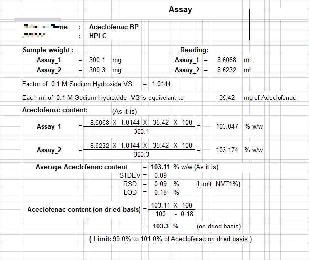 ⇲ 수화물이 아닌 경우에는 건조감량 등을 통해 수분을 제거하여 건조한 것을 가지고 시험을 하거나 건조감량시험으로 측정한 값을 계산으로 보정하고 있으며, 전자는 “건조한 것은 ~”으로, 후자는 “환산한 건조물에 대하여~”로 표기하고 있습니다.